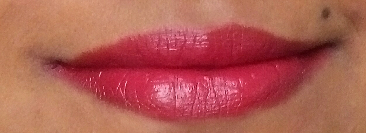 Ruby Touch is a bright red shade that will suit every skin tone. It’s very pigmented, and in one swipe, it coats lips, even the pigmented ones. More swipes make it appears shiny and over the top. Snacking fades its intensity.