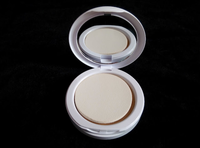 Maybelline White Super Fresh Compact comes in an all white case which is sturdy and shuts with a click. Inside there’s a buff applicator which is smooth and evens out powder on face.