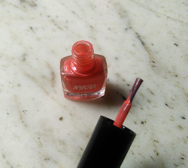 Nykaa nails paints have a unique packaging. It comes in a rectangular glass bottle with a black cap. Its brush applicator is just right and good in quality.