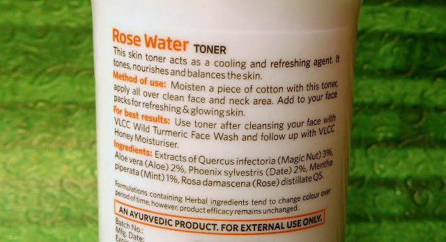 About this product: This toner acts as a cooling and refreshing agent. It tones, nourishes and balances the skin.